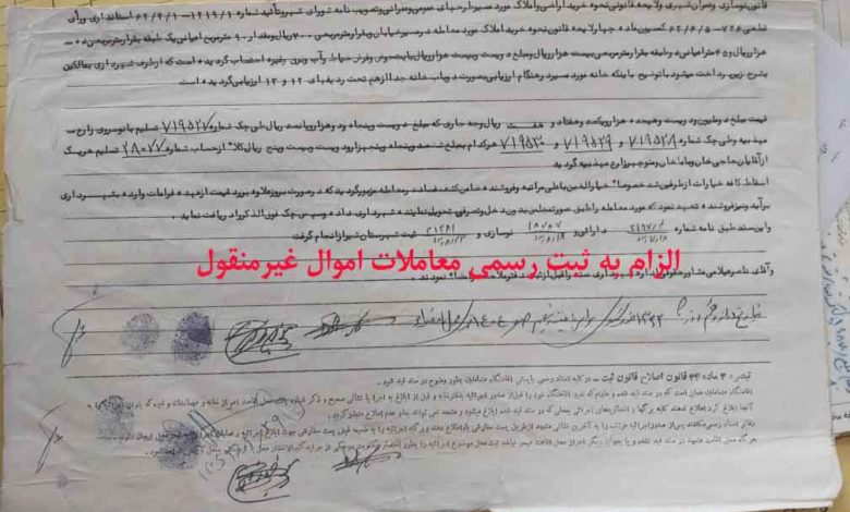 قانون «الزام به ثبت رسمی معاملات اموال غیرمنقول» از سوم تیر ماه اجرا می شود
